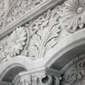 Этот проект выполнен на нашем производстве с использование мрамора Bianco Carrara C Extra. Из этого превосходного натурального материала вы также можете заказать мраморный иконостас наподобие того, который расположен в Свято-Сергиевском женском монастыре и многих других из нашей галереи. Помимо этого мы можем разработать для Вашего храма уникальный проект иконостаса с любыми другими орнаментами, соотношение пропорций и размеров.