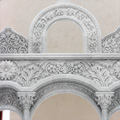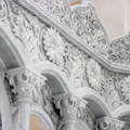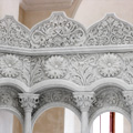 Обрамление центральной иконы уникального резного иконостаса из мрамора украшено орнаментами виноградных листьев, находящихся в нише и обрамленных иониками с двух сторон. Вся эта композиция находится на цельной плите карраского мрамора.